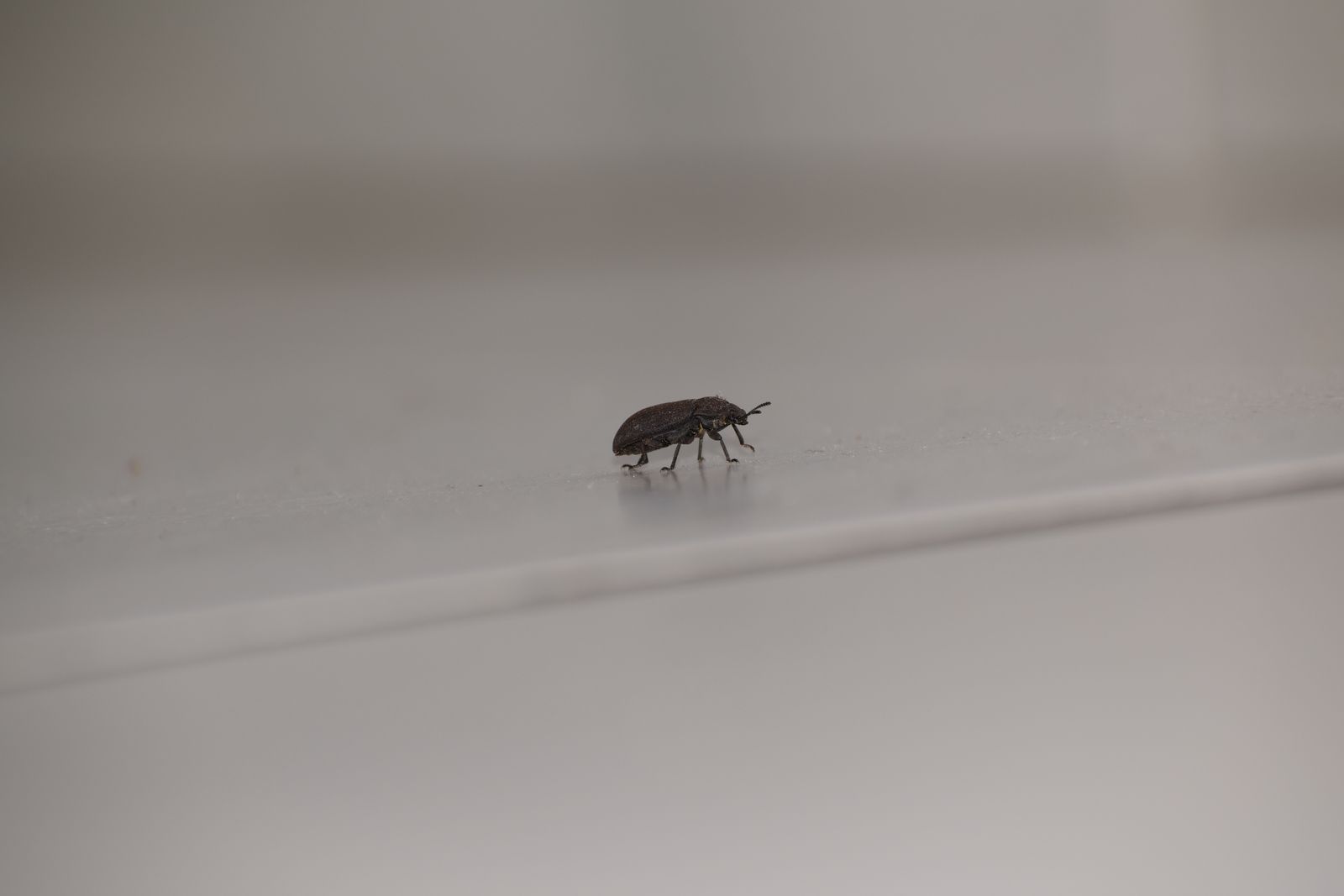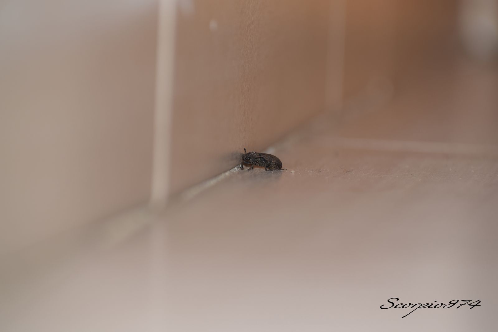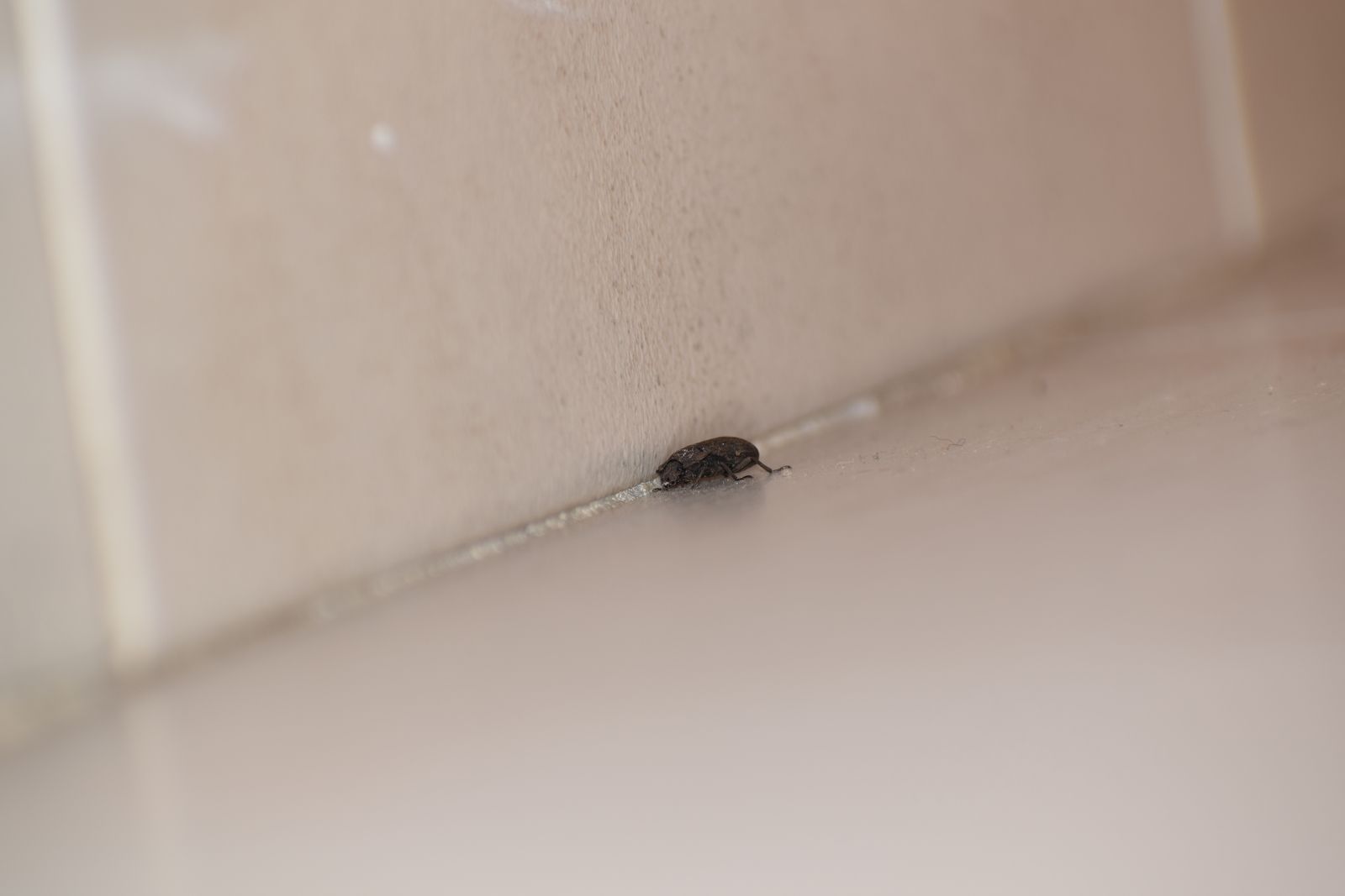 De l'ordre des coléoptères, le Gonocephalum simplex (Fabricius, 1801) est un insecte qui se déplace, en général, à la surface du sol et ne devrait pas se retrouver au niveau d'un étage dans un immeuble. Mais bon, il faut croire que celui-ci est un aventurier.